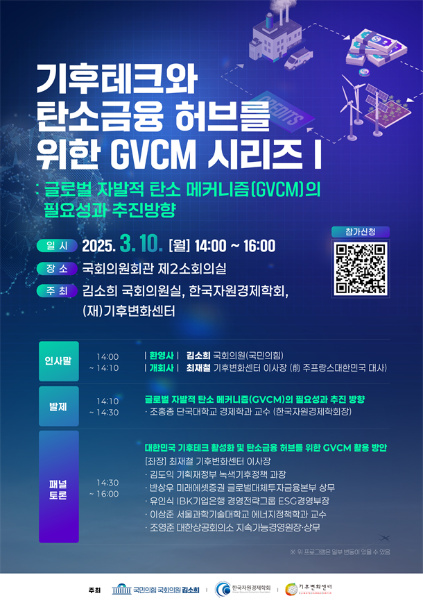 ±è¼­Áß ±âÀÚ / ¿À´Â 3¿ù 10ÀÏ(¿ù), ±¹È¸ÀÇ¿øÈ¸°ü Á¦2¼ÒȸÀǽǿ¡¼­ '±âÈÄÅ×Å©¿Í ź¼Ò±ÝÀ¶ Çãºê¸¦ À§ÇÑ GVCM ½Ã¸®Áî¨ç' Åä·Ðȸ°¡ °³ÃֵȴÙ. À̹ø Çà»ç´Â ±Û·Î¹ú ±âÈÄÀ§±â ´ëÀÀÀ» À§ÇÑ 2030 ±¹°¡Àû °¨Ãà ¸ñÇ¥(NDC) ´Þ¼º°ú 2035 NDC »óÇâÀÌ ¿ä±¸µÇ´Â ½ÃÁ¡¿¡¼­ ÁøÇàµÈ´Ù. Çѱ¹Àº ±¹³» °¨Ãà ³ë·Â¸¸À¸·Î´Â ¸ñÇ¥ ´Þ¼ºÀÌ ¾î·Á¿î ¿©·¯ ÇѰ踦 Áö´Ï°í ÀÖ´Ù.