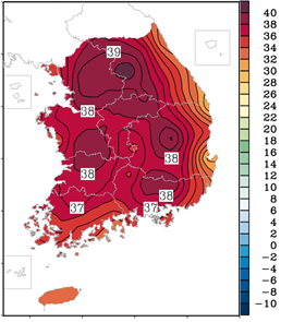 ¼­¿ïÀº Á¾ÀüÀÇ ±â·ÏÀÎ 38.4¡É(1994³â 7¿ù 24ÀÏ)¸¦ ¶Ù¾î³ÑÀ¸¸é¼­ 1907³â 10¿ù 1ÀÏ¿¡ ±â»ó°üÃøÀ» ½ÃÀÛÇÑ ÀÌ·¡ °¡Àå ³ôÀº °ªÀ» ±â·ÏÇÏ¿´°í, ƯÈ÷, °­¿øµµ ȫõ(1971³â 9¿ù 27ÀÏ °üÃø ½ÃÀÛ)Àº ±âÁ¸¿¡ ´ë±¸¿¡¼­ ±â·ÏÇÑ Àü±¹ ¿ª´ë 1À§ÀÎ 40.0¡É(1942³â 8¿ù 1ÀÏ)¸¦ °æ½ÅÇÏ¿© 76³â ¸¸¿¡ ¿ª´ë Àü±¹¿¡¼­ °¡Àå ³ôÀº ±â¿ÂÀ» ±â·ÏÇÏ¿´´Ù.