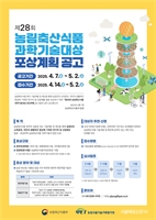Á¦28ȸ ³ó¸²Ãà»ê½Äǰ °úÇбâ¼ú´ë»ó Èĺ¸ÀÚ Ãßõ °ø¸ð³ó¸²½Äǰ°úÇбâ¼ú ¹ßÀü¿¡ °ø·Î°¡ ¶Ñ·ÇÇÑ ¿¬±¸ÀÚ¡¤»ê¾÷ü ¼±Á¤ Æ÷»ó¡ã Á¦28ȸ ³ó¸²Ãà»ê½Äǰ °úÇбâ¼ú´ë»ó Æ÷»ó°èȹ...